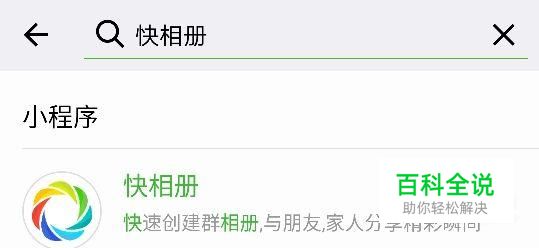 在微信的发现—>小程序—>搜索”快相册“小程序,第一个就是我们需要的小程序了