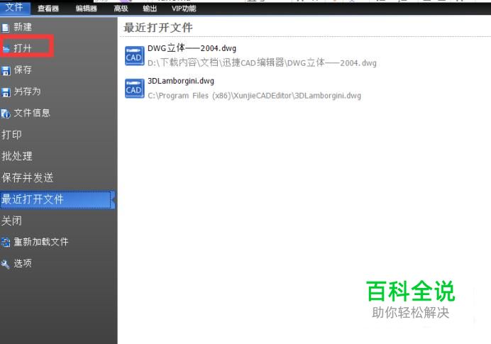 双击电脑桌面上的cad软件的图标。之后,选择文件菜单,点击下拉框中的打开按钮。