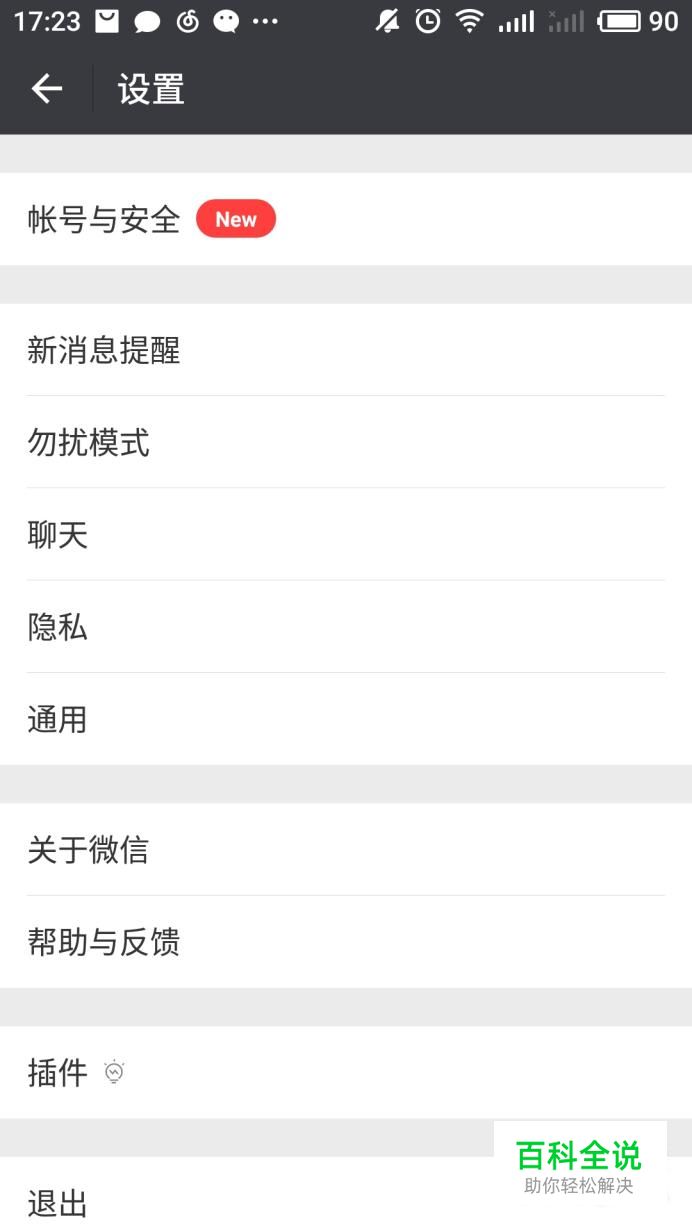 进图设置界面后大家会看到很多分栏,找到关于微信点击进入。