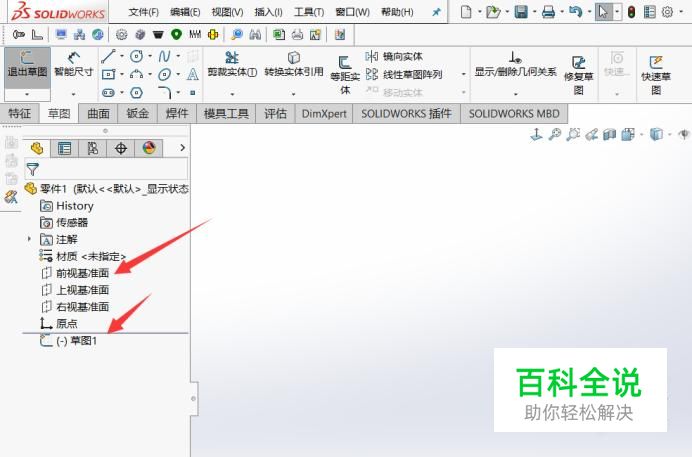 我们先来绘制一个半球壳,选择正视基准面然后新建一个草图,我们绘制的第一个草图尽量选择正视基准面,养成良好的作图习惯。