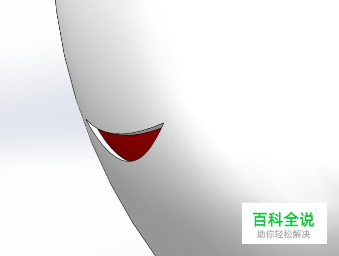 之后使用拉伸切除,在球面上把嘴巴给切出来,这个时候可以看到有嘴巴了,不过嘴巴是镂空的,这样不好看。所以我们要把嘴巴给填上。