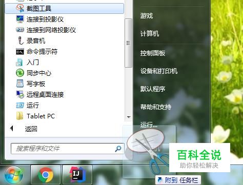 系统截图工具:点击开始按钮,点开所有程序,在附件里找到“截图工具”