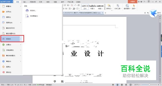 首先打开Word文档,点击打开工具栏左上角的打印,点击并确定;