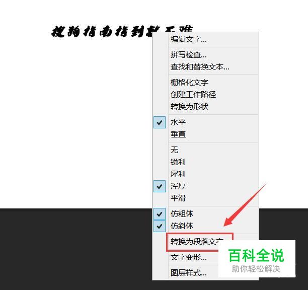 我们在输入框内输入文字,然后选择文字单击鼠标右键在弹出的右键菜单那里找到转换为段落文本选项,如图所示: