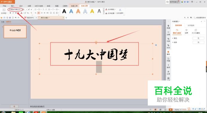 最后修改后的文字就漂亮的展示出来了。正值十九大,所以小编就写了个“十九大,中国梦”,祝祖国繁荣昌盛,越来越好。