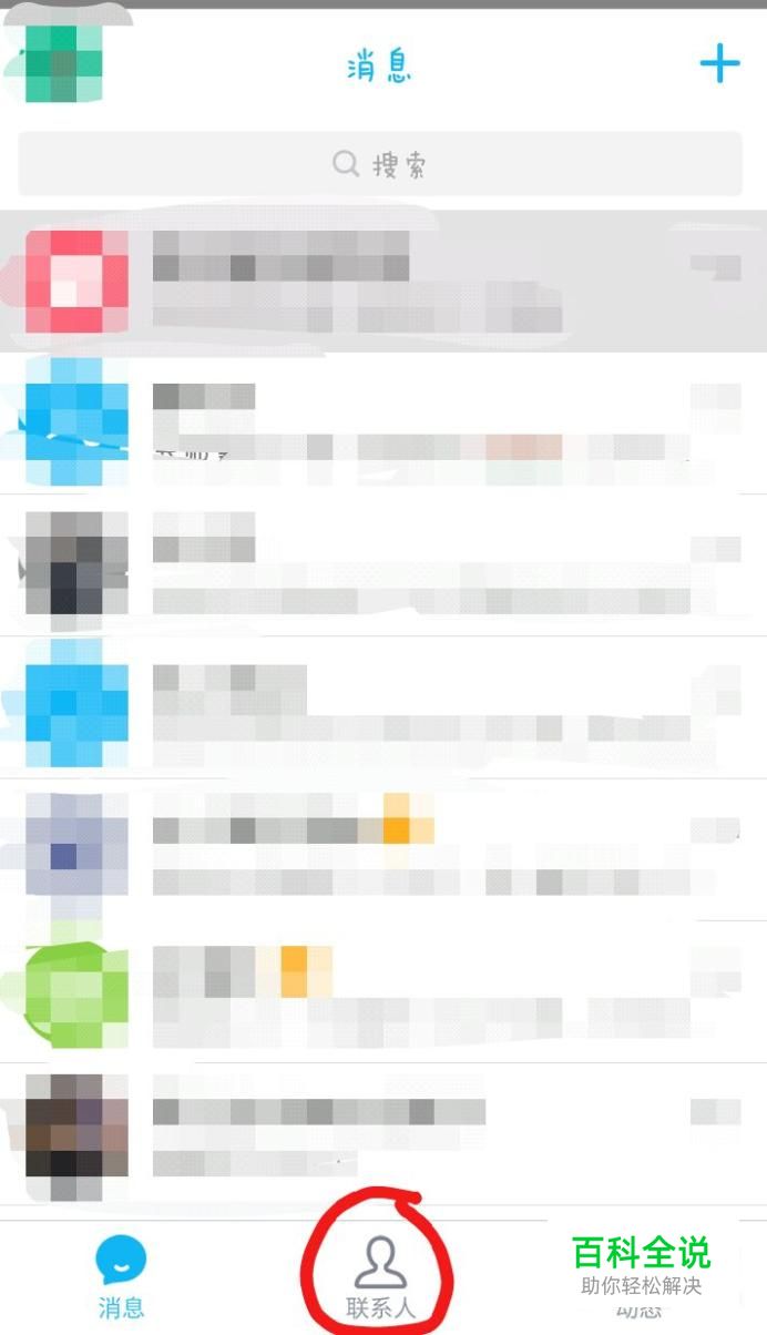 点击手机QQ,进入以下界面,在界面中找到“联系人”,点击它,进入以下界面。
