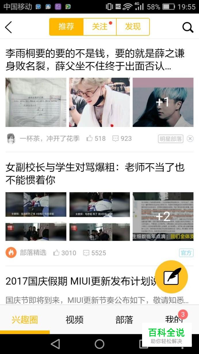 点击动态之后,进去我们就会在有上角看见一个兴趣部落,点击进入兴趣部落。