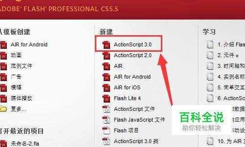 选择“新建”下面的ActionScript3.0
