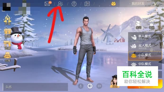 进入到荒野行动手游主页后,点击最上方的“好友”,如下图所示。