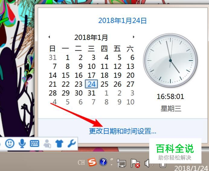 我们要更改文件的创建时间,首先,把系统的时间改成你需要的时间。 点击任务栏上的时间,然后点击‘更改日期和时间设置’
