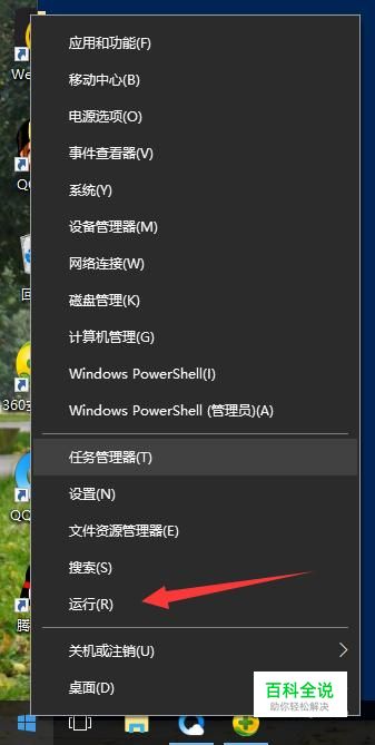 首先,右键单击电脑下端任务栏最左边的windows图标,在弹出的选项中,找到“运行”,并用左键单击。