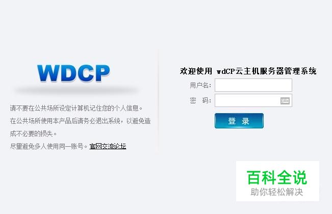 进入wdcp的登陆面板以后,输入之前在系统搭建的时候已经注册好的账号密码