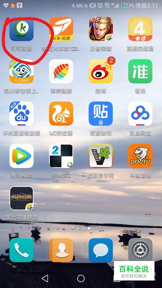 首先点击手机屏幕上的“可可英语”,如图所示。