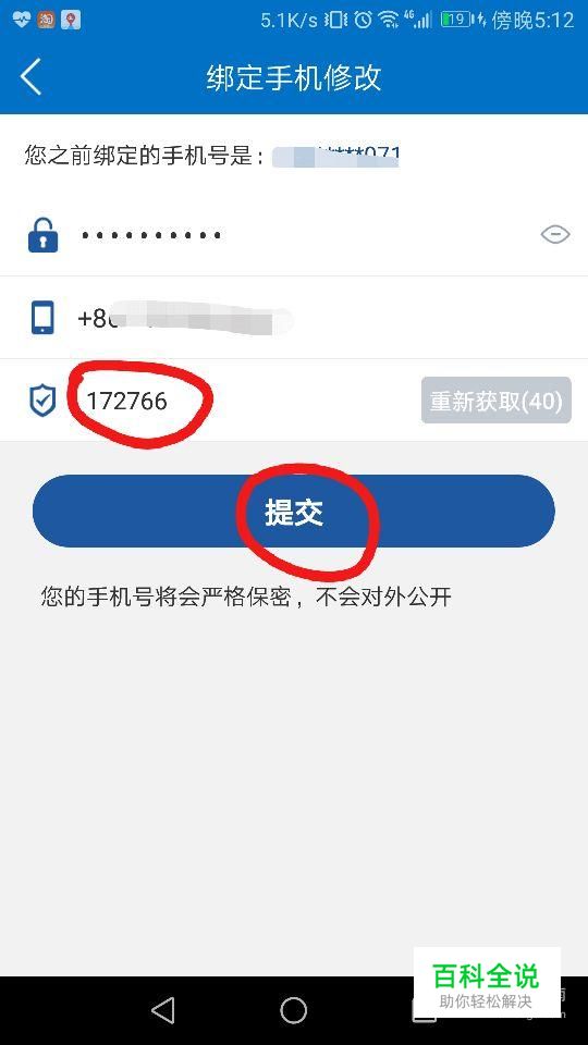 在填写完短信验证码后,点击界面下方的“提交”,如图所示。