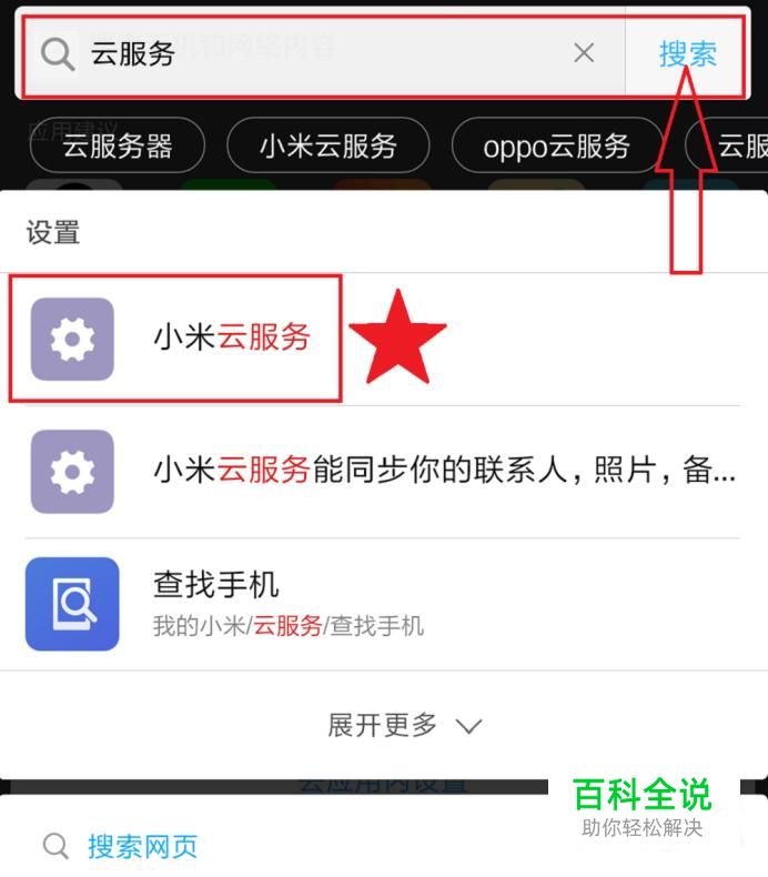 搜索栏下方便快速找到云服务啦~找到后打开:小米云服务。