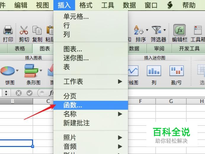 然后点击菜单栏上的‘插入’,并在打开的下拉菜单上点击‘函数’