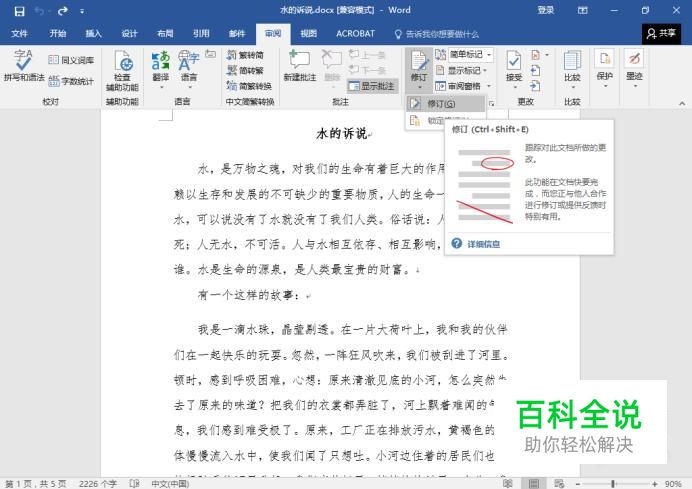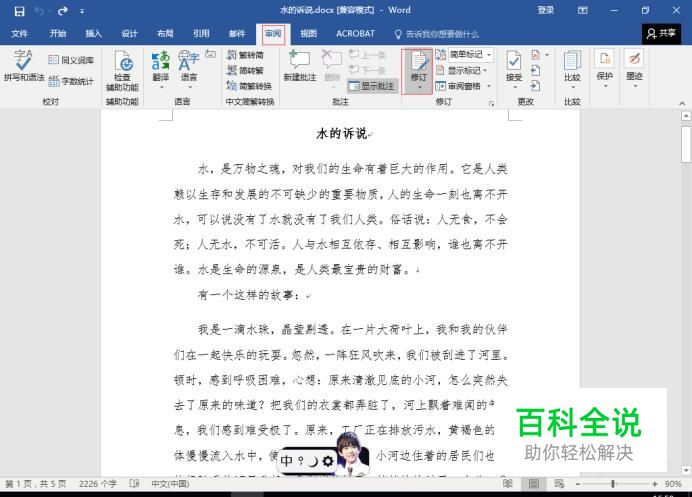 打开已经编辑好的文档,切换到"审阅"视图,开始修改正文。
