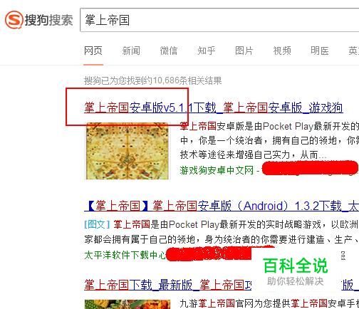 在搜狗搜索引擎中输入关键词“掌上帝国”