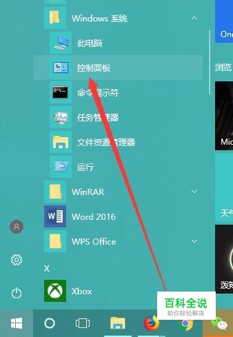 点击屏幕左下角开始按钮,在Windows系统下拉菜单中找到“控制面板”打开: