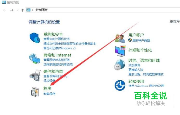 在控制面板中找到“程序”选项,点击打开: