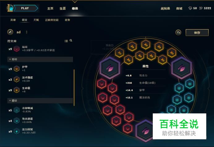 小编选用的是3个大精华是攻击力,红色印记9个护甲穿透,黄色符印9个成长生命值,蓝色雕纹9个魔法抗性。能提升男刀的存活能力以及线上能力。