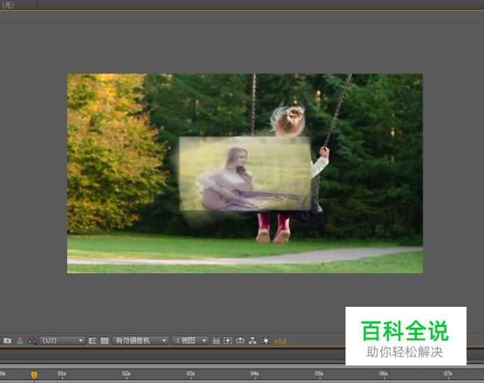 移动时间线播放头到两秒位置,将“比例”参数调整0.4%。(近乎消失)
