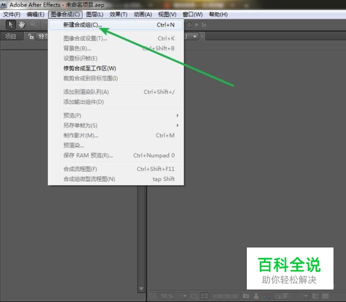 打开我们的AE软件,执行:图像合成--新建合成组快速新建一个新的合成组。