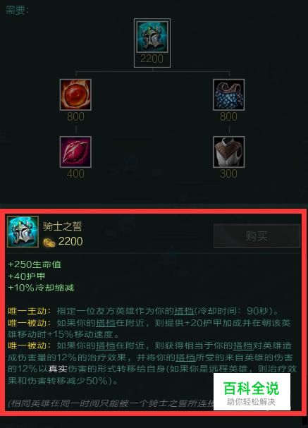 第五件装备选择的是骑士之誓,增加生命值,护甲,冷却缩减。可以指定一位友方英雄作为搭档,当搭档在附近时,朝队友移动会增加移速和护甲。