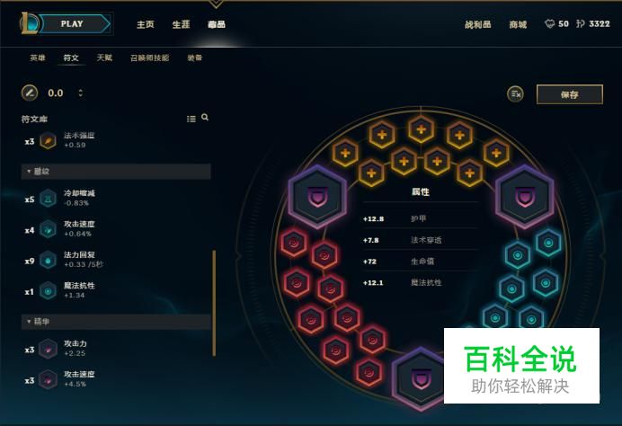 小编选用的是3个大精华是护甲,红色印记9个法穿,黄色符印9个生命值,蓝色雕纹9个魔法抗性。能提升洛在双人线的对线能力。