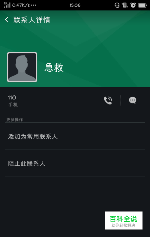 首先在电话本里存入急救电话。我存的是110