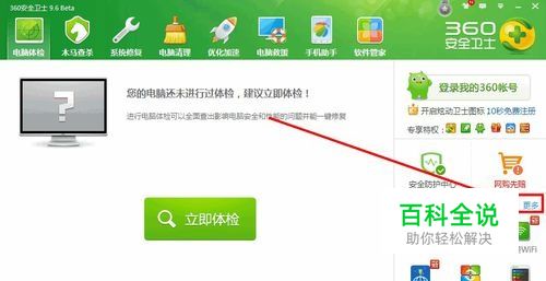 打开360安全卫士主面板,如图所示