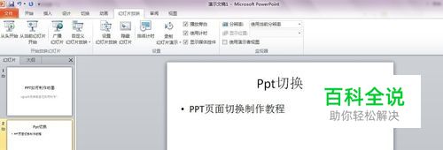 现在设置第二页切换效果。 用鼠标选择第二页,然后在“切换”下选择对用的效果