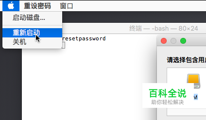 “重设密码”实用工具重设密码,这是比较常用 且用的比较方便的方法 (此方法一定要保证 mac 电脑没有开启 FlieVault 功能)