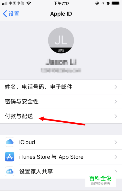首先,在设置里面进入付款和送货的界面后,点击付款方式。