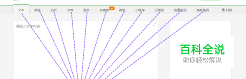 打开网站首页,我们可以看到支持在线制作二维码,文本、网址、名片、文件、图片、多媒体、微信、小程序、记录码、批量生码、模板生码等这些类别。