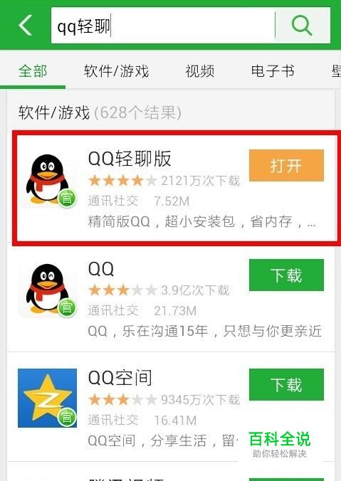 我们从管家或者助手里下载QQ,在搜索框里输入【qq轻聊】,然后qq就出现了,下载并安装就可以了