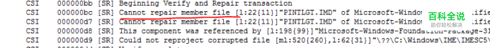 找到损坏的文件 1.1 打开“开始”--》“运行”窗口,输入:cmd,打开运行窗口 1.2 进行系统扫描,输入:sfc /scannow 1.3 将扫描结果生成文件,发送到桌面,输入:sfc /scannow 1.4 查看sfcdetails.txt文件,找到问题文件(图示为‘PINTLGT.IMD’)。注:一般文件损坏都是提示:“Cannot repair member file。。。”。