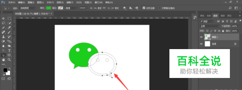 使用钢笔工具,在椭圆左下方添加3个锚点,再选择直接选择工具,调节锚点,做出微信一个角的形状。