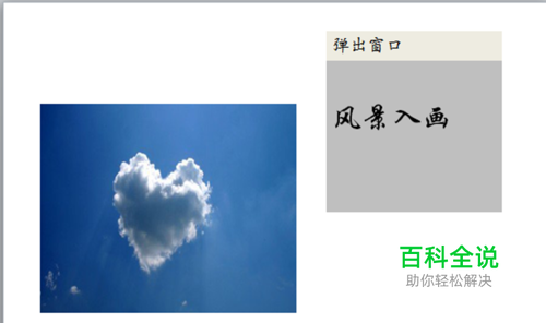 执行插入-文本框命令,输入文字内容“风景入画”,同样方法插入另一个文本框,输入“弹出窗口”。