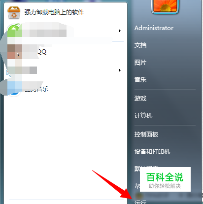 如果是FAT32格式建议更改为NTFS格式,打开电脑开始菜单,找到 【运行】选项,点击打开