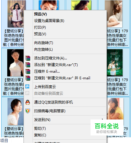 Ctrl+A全选图片或者选取第一张图片后按住Shift键,亦可以配合Ctrl的单独附加选取使用。