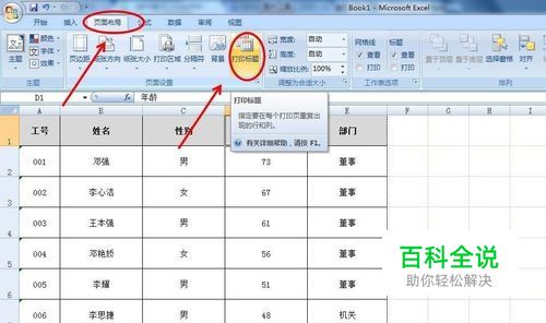 打开需要打印的表格,执行“页面布局→打印标题”命令