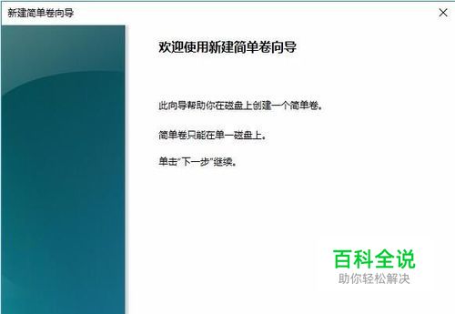 在弹出“新建简单卷向导”对话框中,直接单击“下一步”按钮。