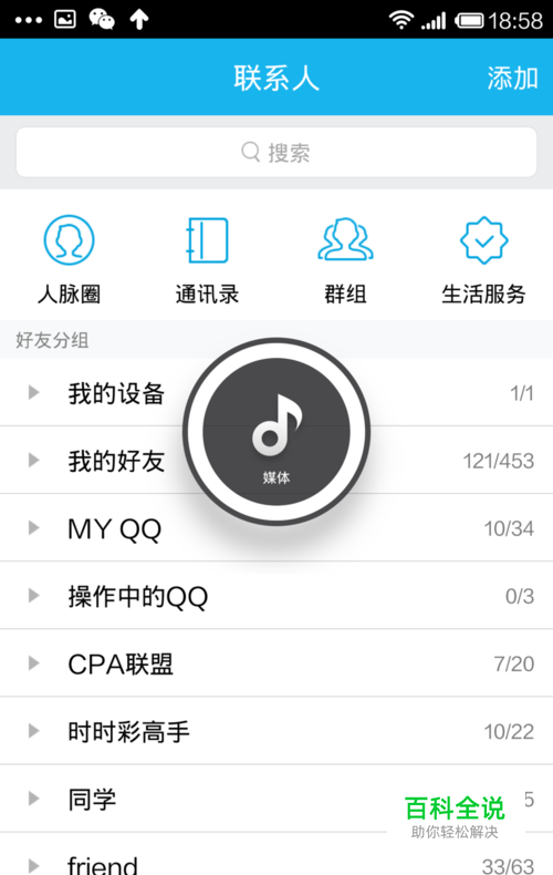 点开联系人选项之后,我们可以在好友分组那里找到一个“我的设备”,我们点开它 如图