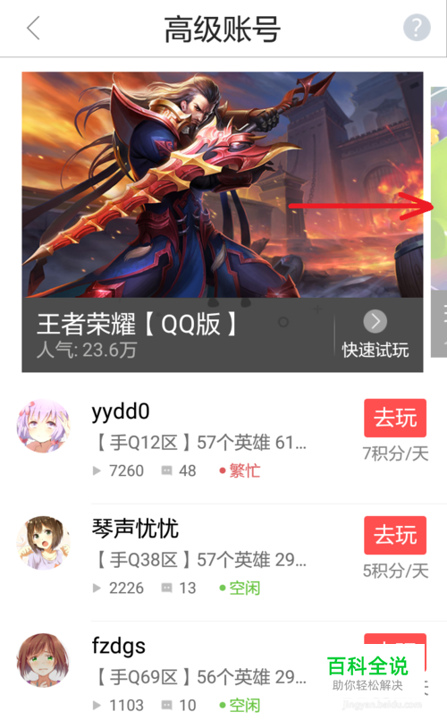 也可根据共享的账号信息及当前状态,选择感兴趣的账号,点击“去玩”,即可免注册免登录,直接在线体验,不占用手机内存。