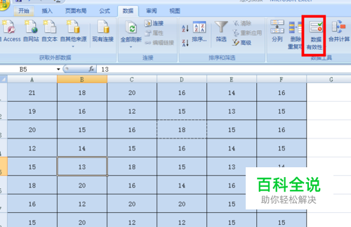 单击之后会出现如图所示,此时我们可以看到有一个”数据有效性“按钮,单击该按钮。