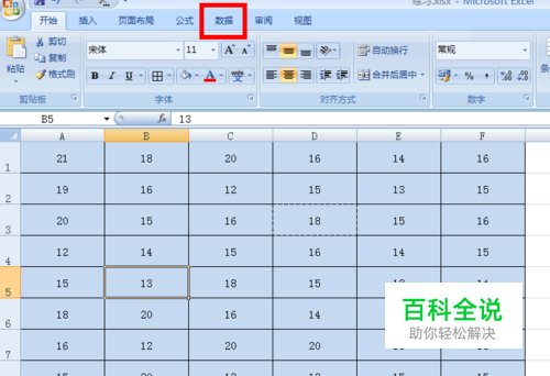首先我们先打开excel工作表,打开之后我们选择好需要设置数据有效性的区域,选择好之后单击菜单栏里的”数据“按钮。