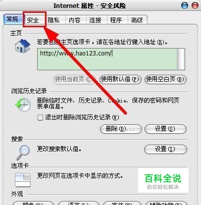 双击“Internet 选项”,找到“安全”。