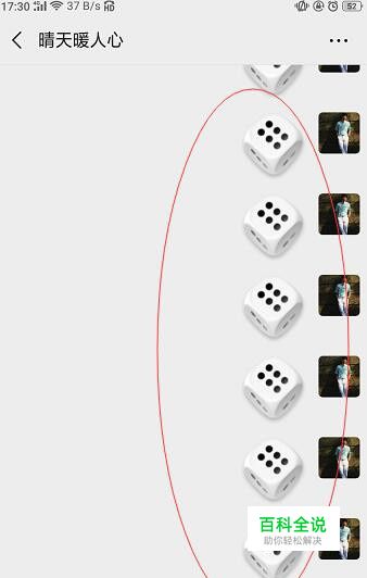 然后打开手机微信掷骰子的页面,向一个微信好友掷骰子。直到掷出你想要的点数,我们这里以6点为例。
