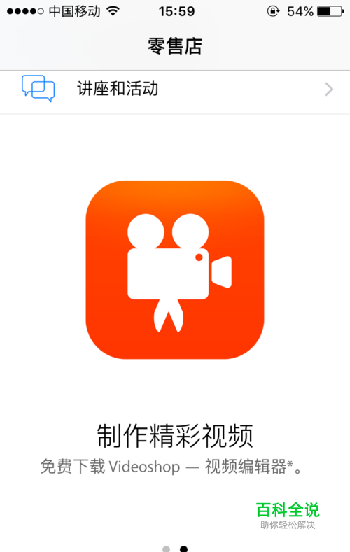 进入Apple Store,点击“零售店”下拉就可以看到,如下可以免费下载“制作精彩视频”这个APP了。